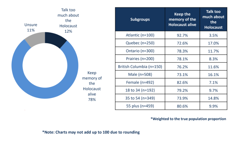 Finding 1. Nearly eight in ten Canadians believe that we need to keep the memory of the Holocaust alive, but over one in ten believe that Jewish people talk too much abut the Holocaust