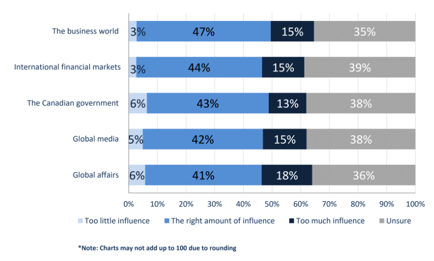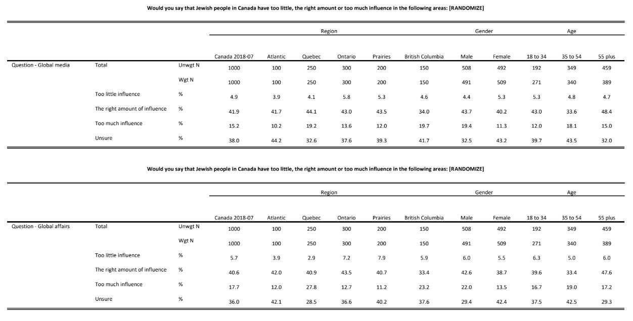 QUESTION – Would you say that Jewish people in Canada have too little, the right amount or too much influence in the following areas: Global affairs
