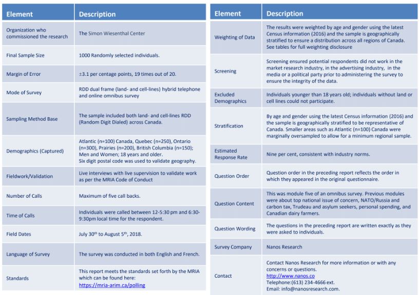 submitted by Nanos to Simon Wiesenthal Center, August 2018
