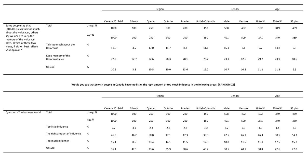 The research was commissioned by the Simon Wiesenthal Center and was conducted by Nanos Research.
